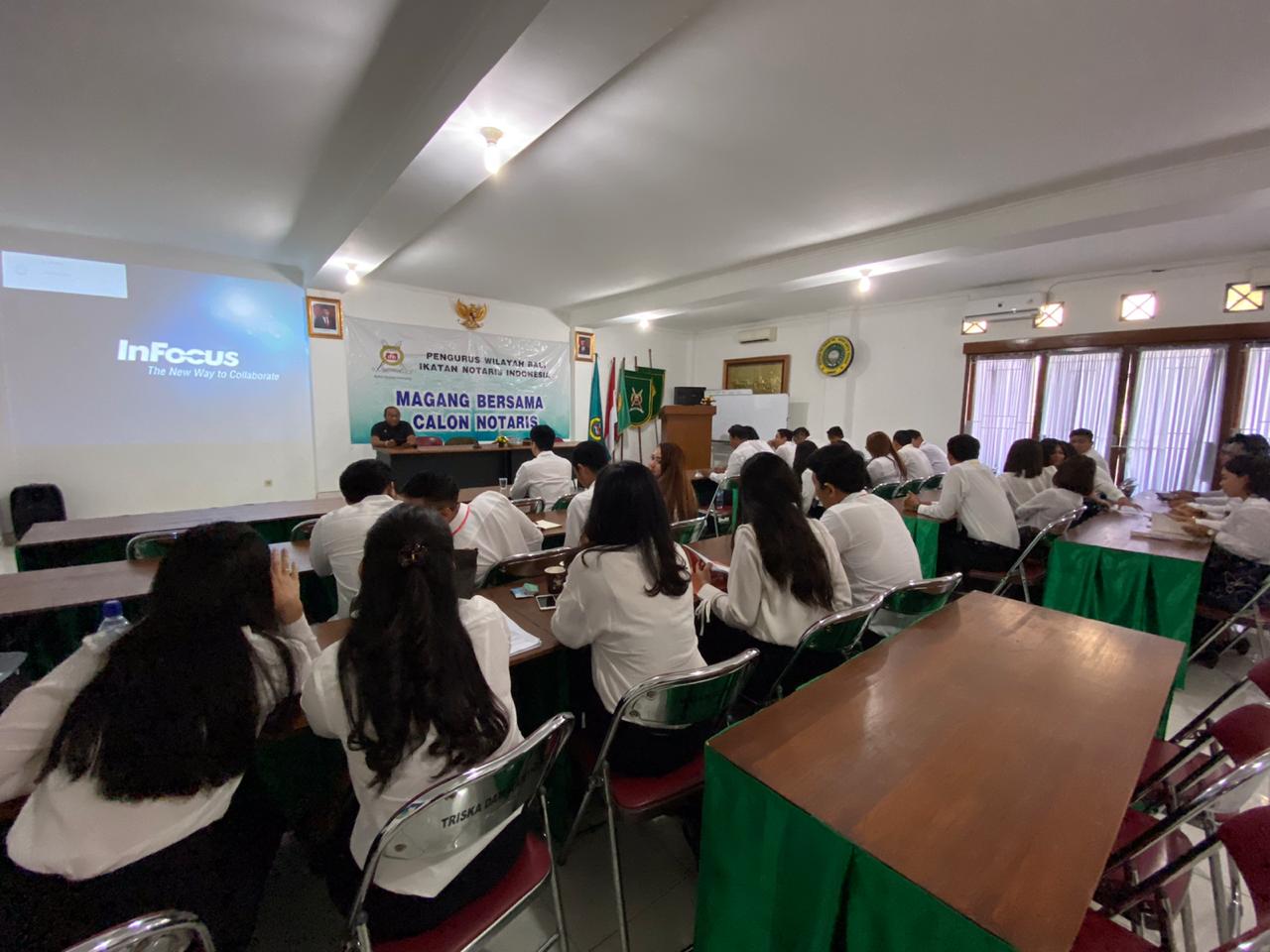 DENPASAR-Tingkatkan kualitas para notaris di Indonesia, Pengurus Wilayah (Pengwil) Bali Ikatan Notaris Indonesia (INI) melaksanakan kegiatan magang bersama, pada hari Selasa (25/2/2020), kegiatan dilaksanakan di sekretariat bersama Pengwil Bali INI-IPPAT, jalan purba Indah Denpasar.